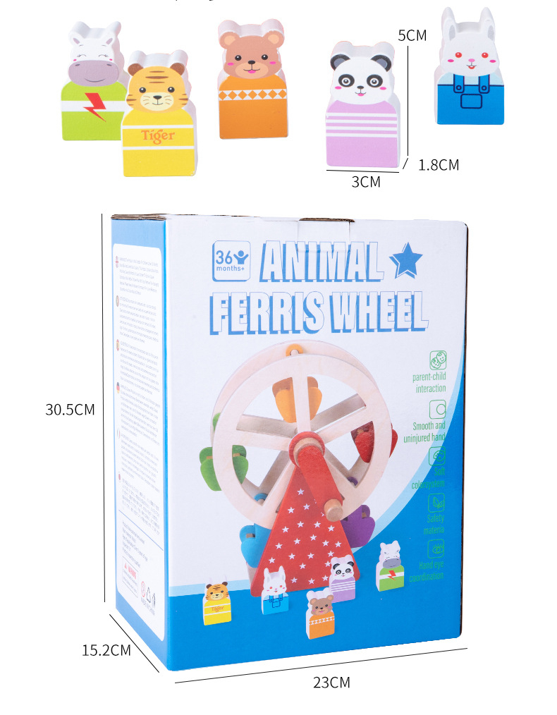 Give your child the gift of learning through play with the Wooden Animal Hand Ferris Wheel—the perfect companion for their early childhood educational journey.