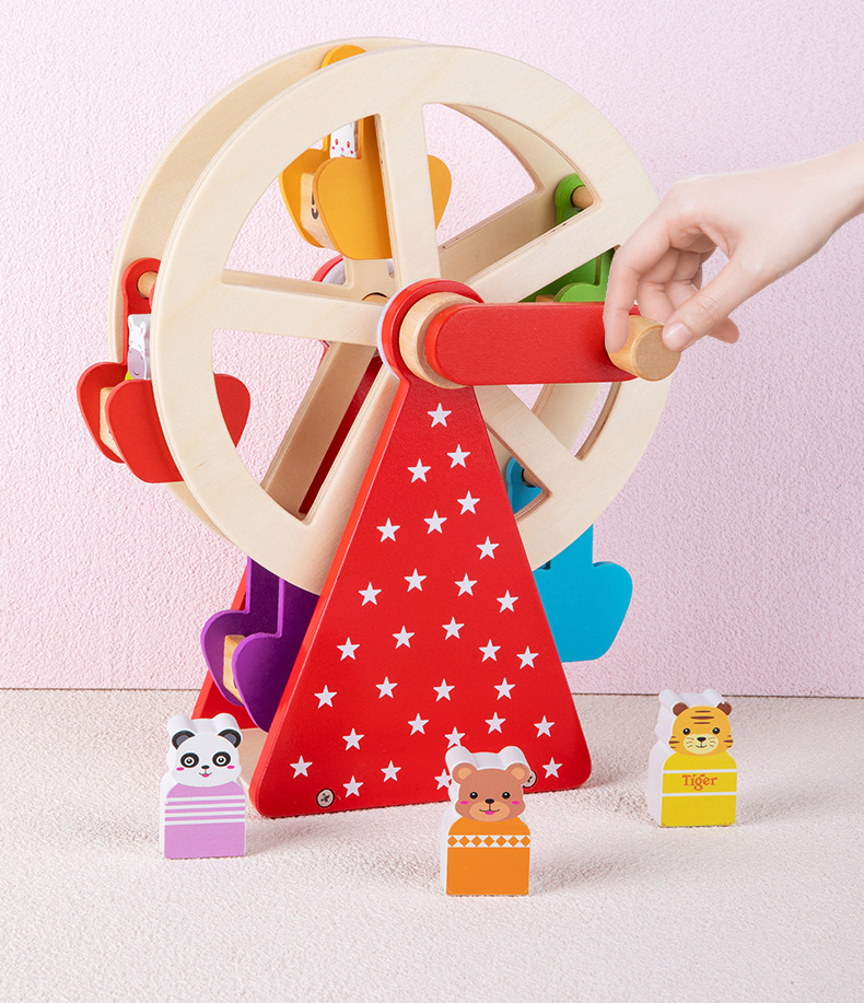 Introducing the Wooden Animal Hand Ferris Wheel: A Fun and Educational Toy for Little Minds