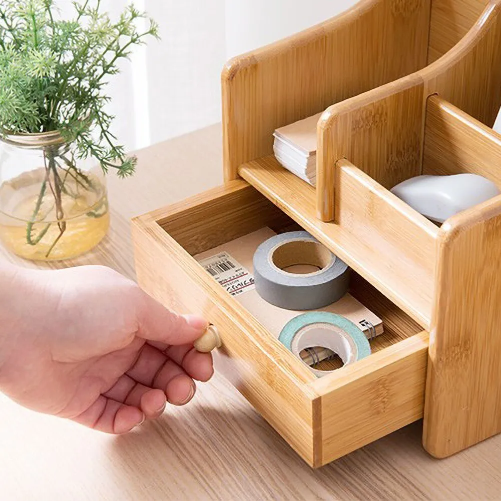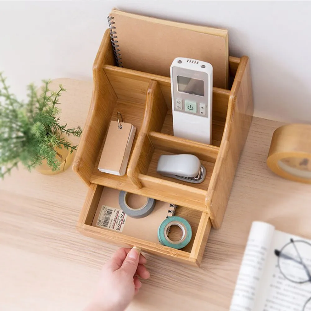 Crafted from high-quality wood, the Wooden Desktop Storage Box adds a touch of natural charm to your desk. Its minimalistic design ensures it complements any decor, making it the perfect storage solution for a modern home office, workstations, or even your bedroom for cosmetic storage.