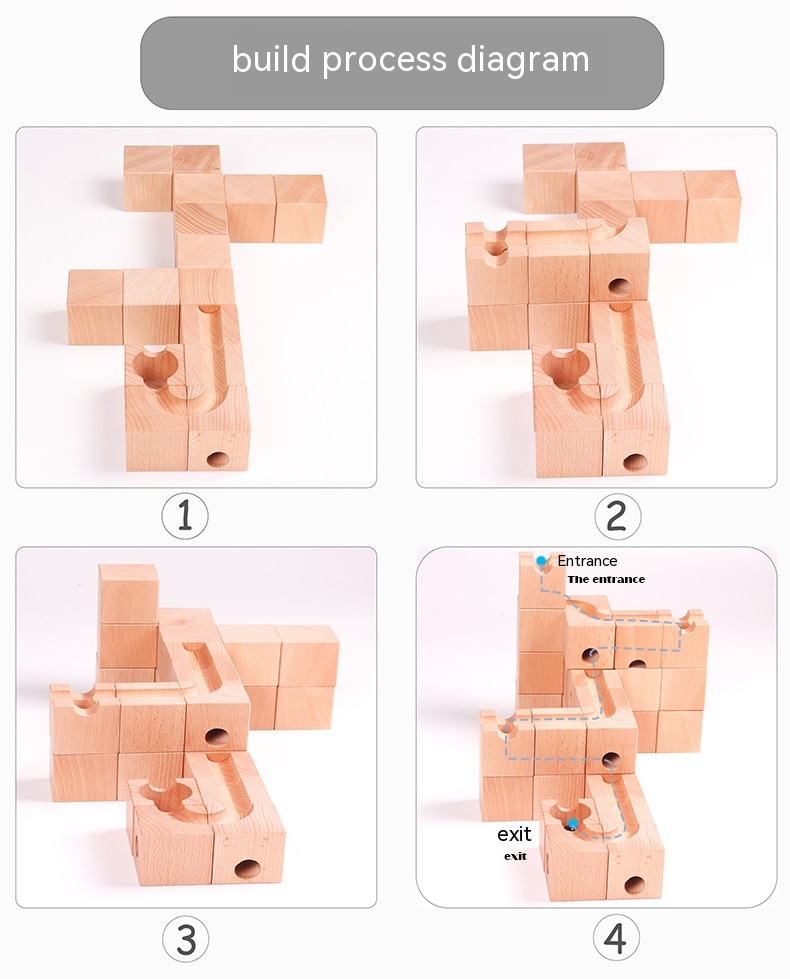 - Customizable Designs: Mix and match wooden tracks and pipes to build different marble paths.