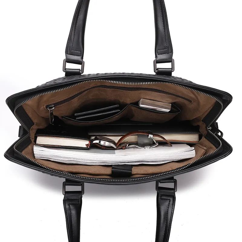 When traveling, the handbag's compact size and organized compartments make it easy to carry documents, a tablet, or other necessities. Its lightweight nature ensures comfort during long commutes or flights.