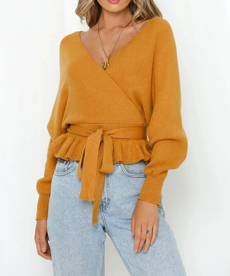 This sweater is designed to be versatile, making it suitable for a wide range of occasions. Whether you're dressing up for a night out or keeping it casual for a day at the office, the wrap front sweater can be styled in many different ways: