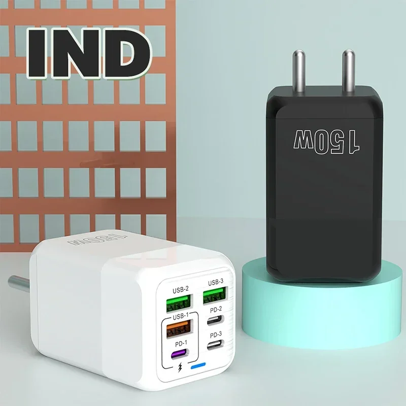 The Xiaomi 150W 6-port fast charger wall adapter supports PD and QC 3.0 for super fast charging. Compatible with iPhone, Samsung, iPad, Xiaomi, Huawei, OnePlus, and more, it ensures efficient charging for multiple devices simultaneously.