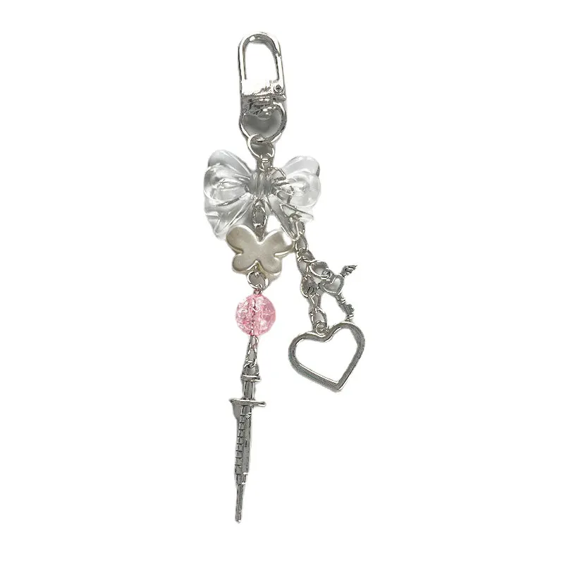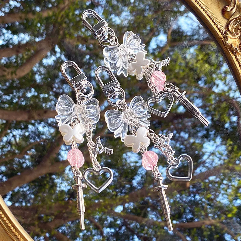 Y2K Sweet Transparent Bow Bead Phone Chain Keychain Pendant