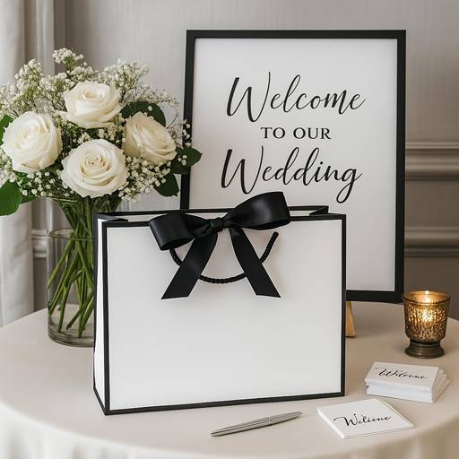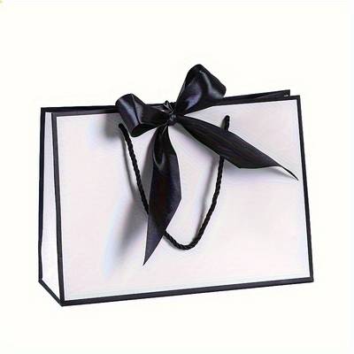 The smooth white matte paper complements the black ribbon, creating a modern and elegant contrast perfect for both casual and formal events. The bags come with strong handles fixed using reinforced attachment methods (not paper handles), making them durable and comfortable to carry.