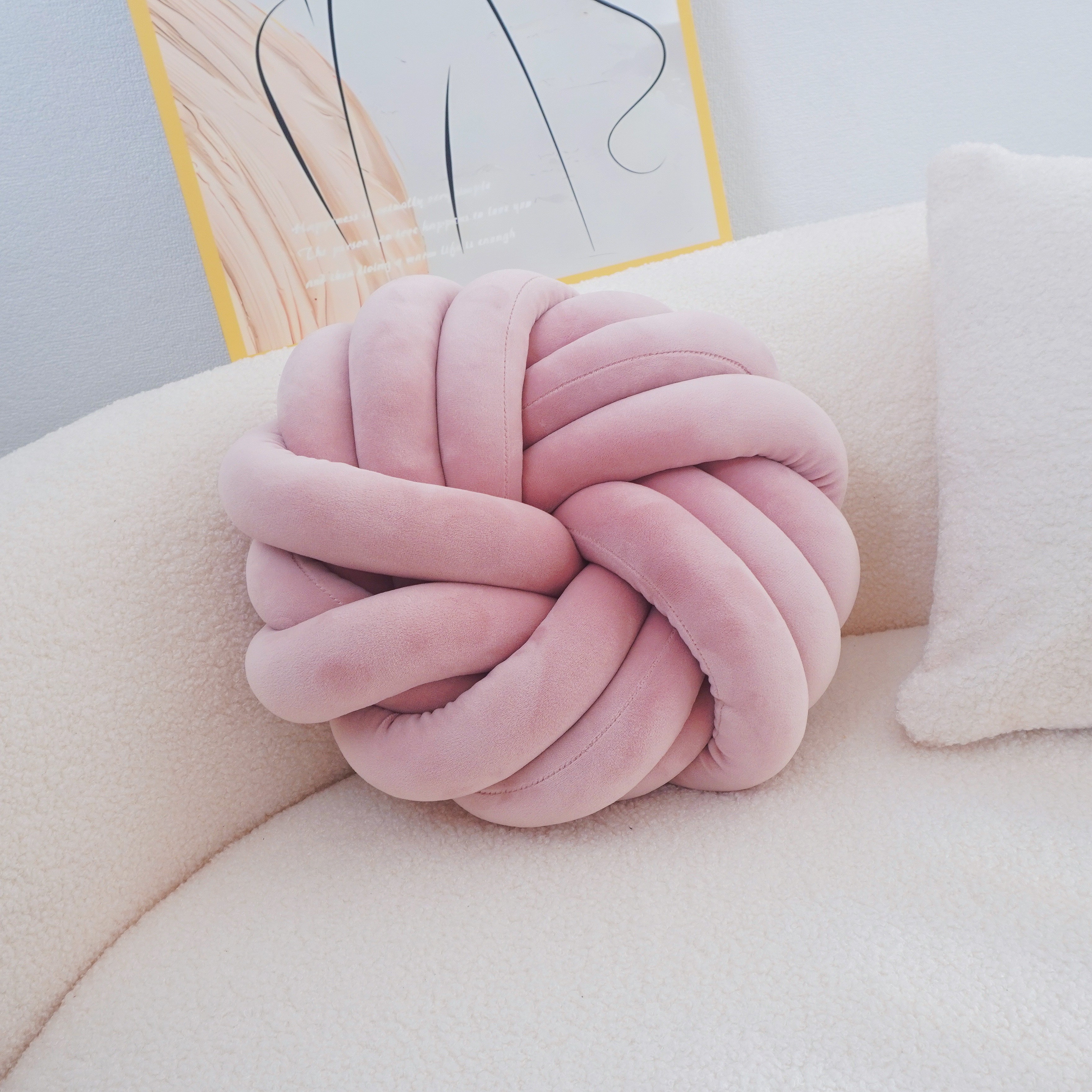 YLBKIKR Handmade Soft Plush Knot Throw Pillow – Multi-Color Modern Minimalist Cushion for Sofa, Bed, and Chair Accent