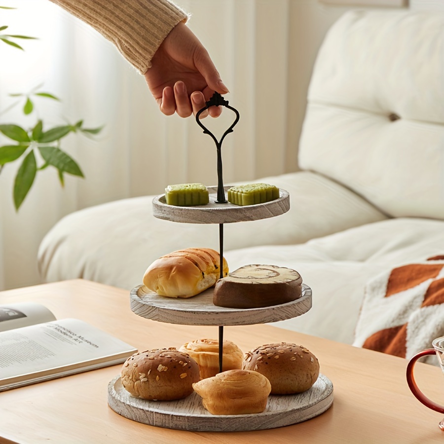 The YUMIPLUS Rustic 2-Tier Wooden Cake Stand is the perfect blend of farmhouse charm and functional elegance. Crafted with natural wood and decorative iron accents, it provides a beautiful display for cupcakes, desserts, and event décor while adding warmth and style to any kitchen or celebration.