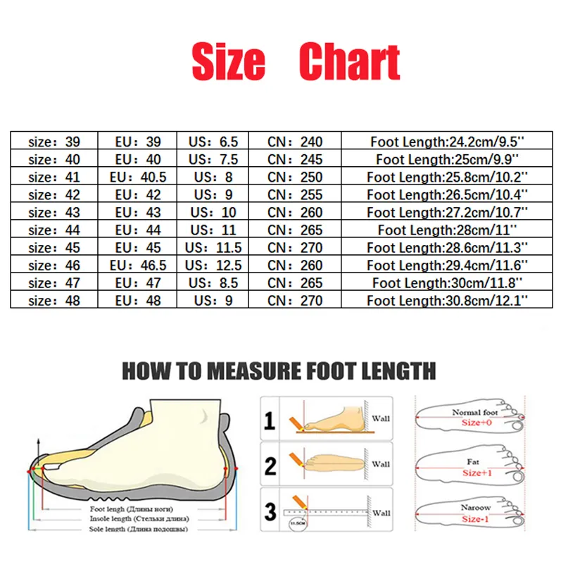 Tallas chinas: 39, 40, 41, 42, 43, 44, 45, 46