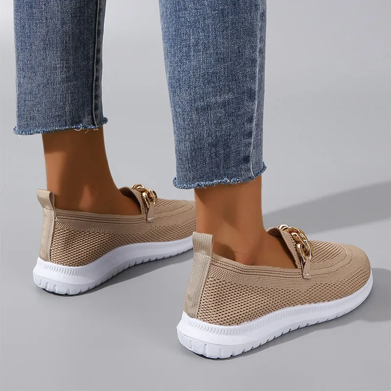 Zapatos planos con cadena para mujer, zapatos deportivos de malla para caminar