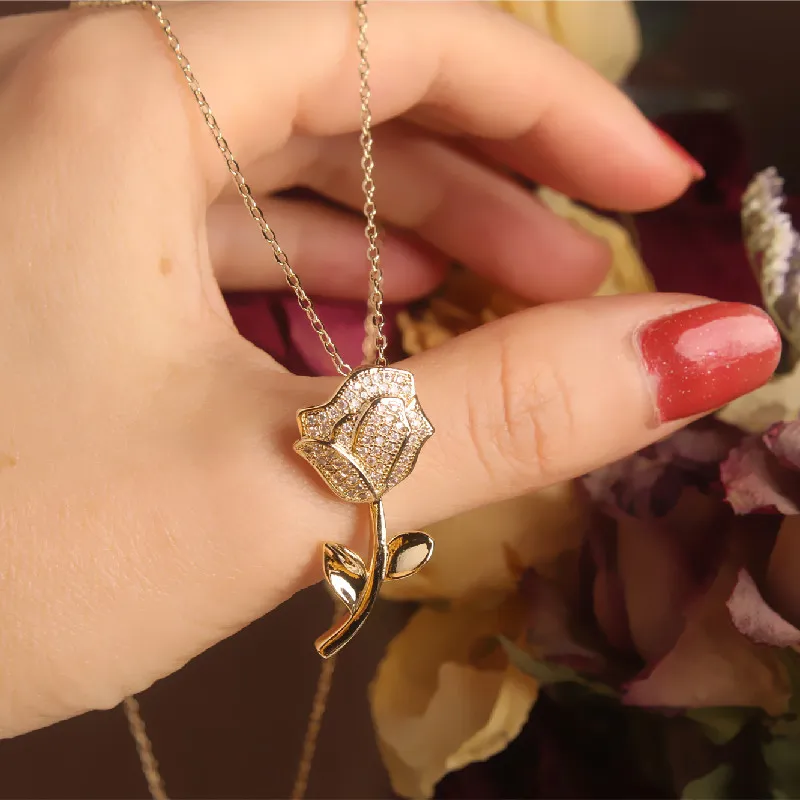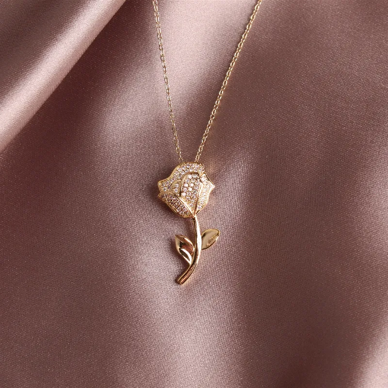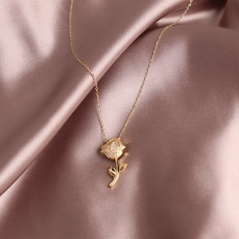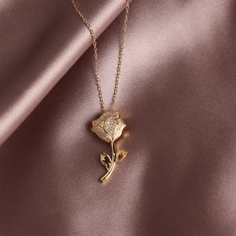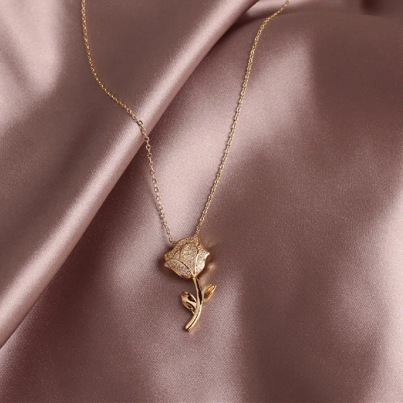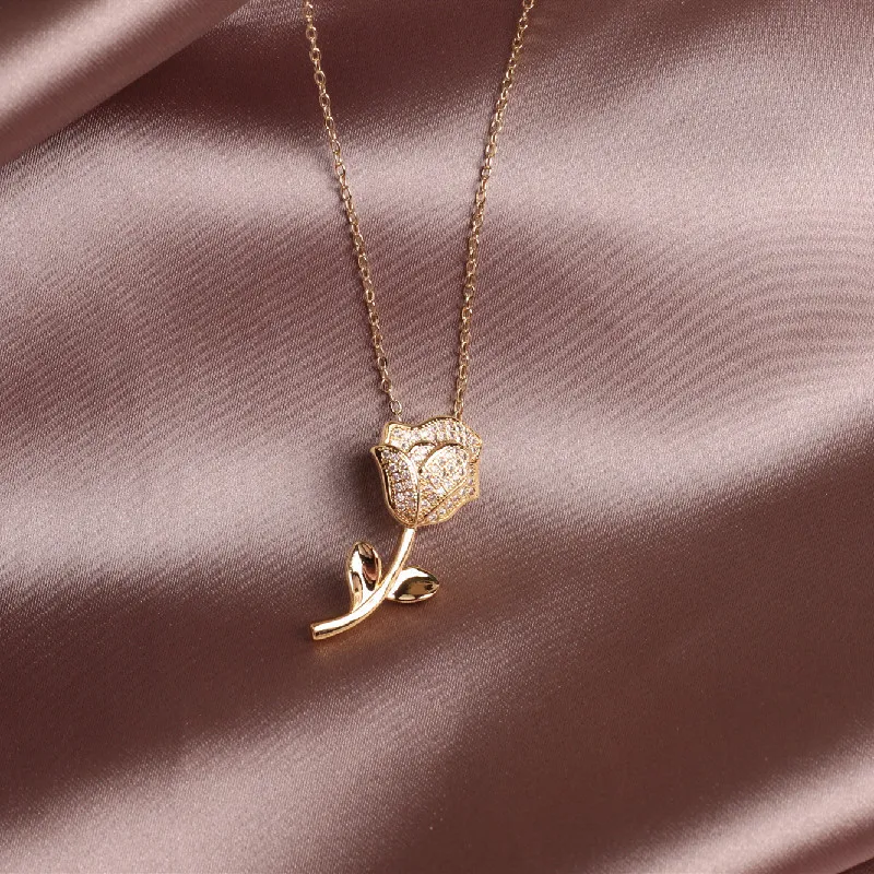Zircon Rose Flower Necklace