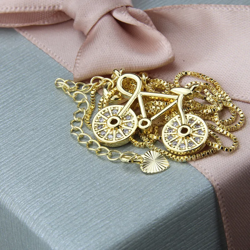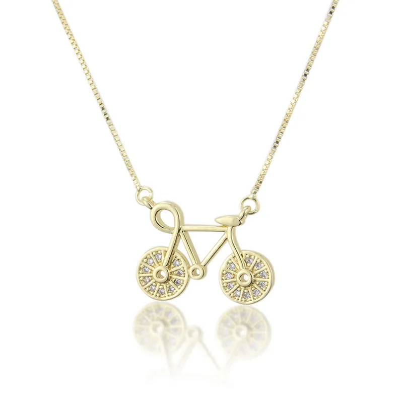 Zirconium Inlaid Bicycle Necklace Factory Direct Supply Of New Copper Electroplated Bicycle Pendant