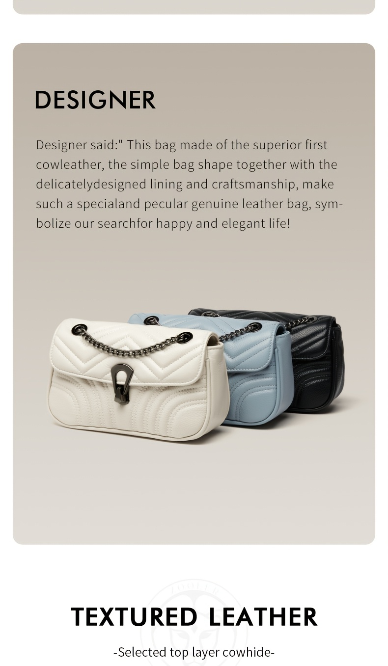 1. Premium Top Layer Cowhide Leather: The luxurious cowhide leather offers superior durability and a smooth finish, ensuring your bag maintains its elegance and structure over time.
