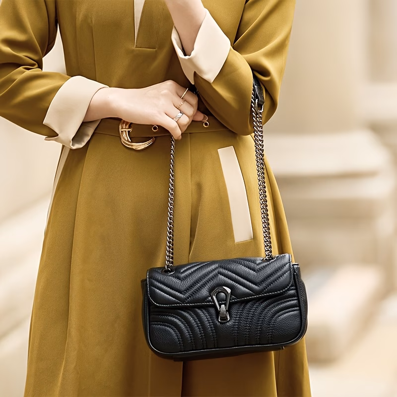 With a classic retro look, the bag includes a long adjustable strap for a comfortable fit, and the elegant gold-tone hardware adds a touch of sophistication. The versatile design allows you to pair it with both casual and formal outfits, making it a go-to accessory for any occasion. Whether you're at a business meeting or out for a casual coffee with friends, this bag will elevate your look while keeping your belongings organized.