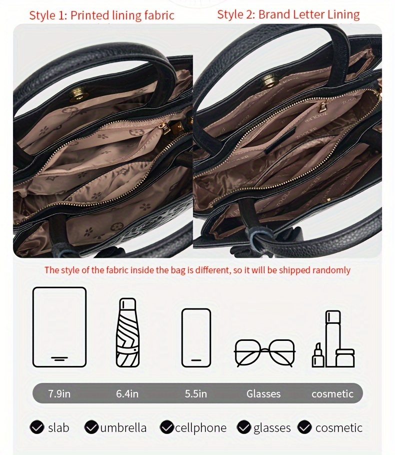 In conclusion, the ZOOLER Elegant Zipper Tote Bag is the ideal handbag for women looking for a combination of style, functionality, and practicality. The chic floral design, spacious interior, and secure zipper closure make it perfect for everyday use, while the sturdy handles ensure comfort and convenience. Whether you're carrying it to work or using it as your go-to weekend bag, this tote bag adds a sophisticated touch to any look. Elevate your style and stay organized with this elegant yet casual handbag.