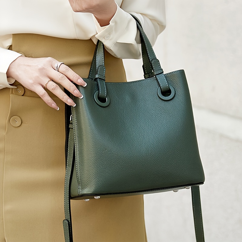 With its clean lines and sleek silhouette, this handbag transitions easily from day to night, providing a chic and functional accessory for any occasion. Whether you're looking for a stylish everyday bag or something to complete your work attire, this genuine leather bucket bag has you covered.