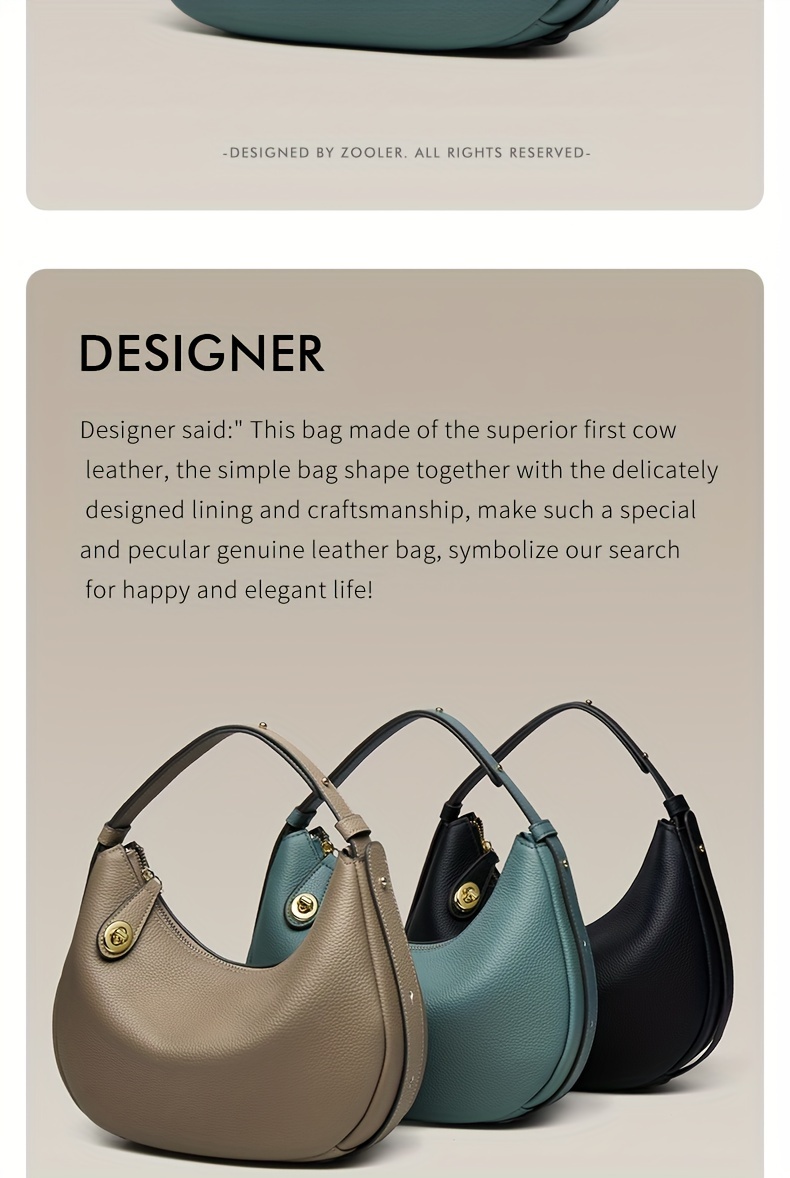 ZOOLER Premium Top-Grain Genuine Leather Women's Handbag – 2026 New Moon Bag, Stylish, Large-Capacity Shoulder and Crossbody Bag