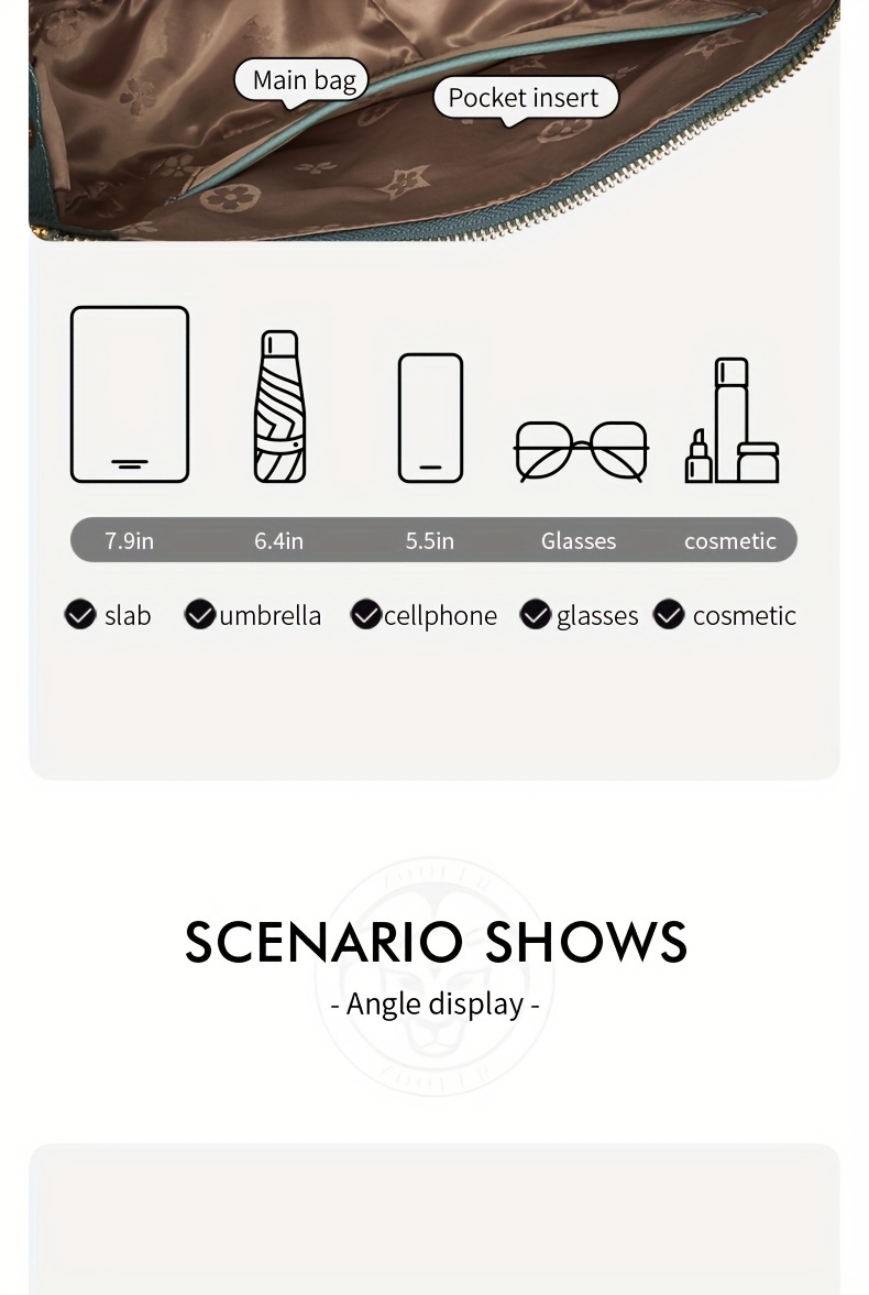 The spacious interior allows you to carry all your essentials with ease, offering enough room for your phone, wallet, makeup, and other