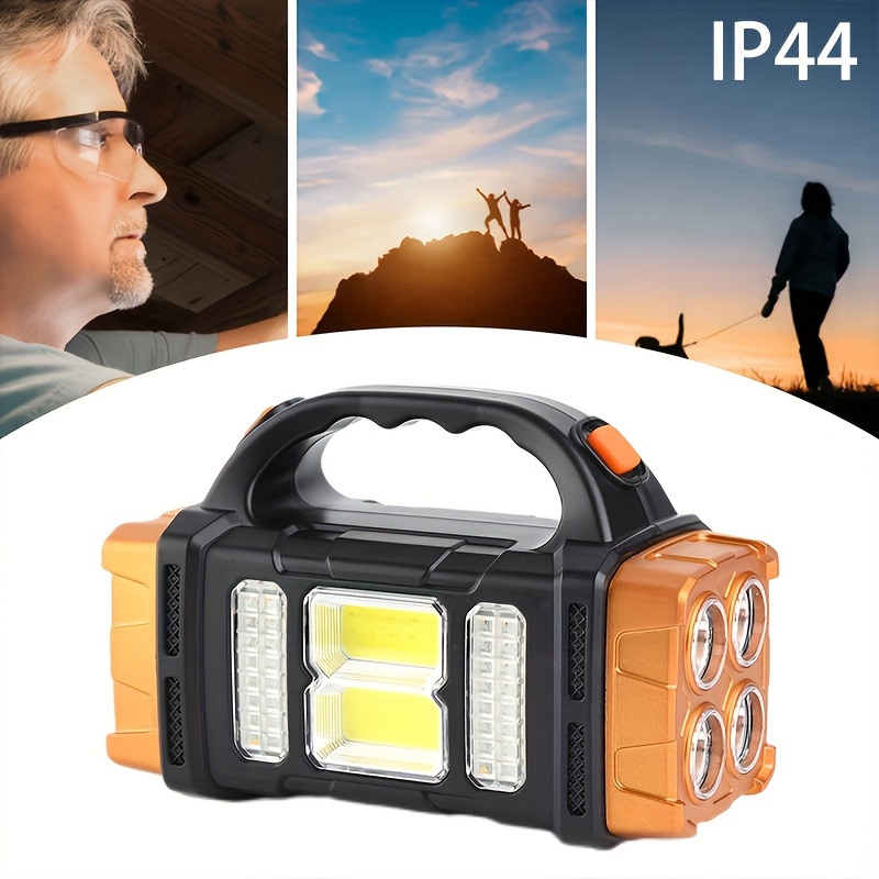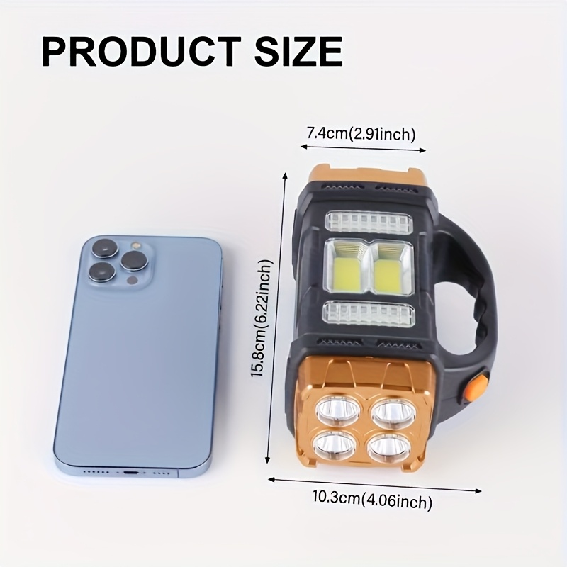 The lamp is built with 4 high-intensity front LEDs that project a strong, focused beam suitable for long-distance visibility. On the side, the COB LED panel provides wide-area lighting, making it perfect for workspaces, campsites, fishing spots, or emergency repairs. With both lighting sources in one device, it functions as a torch, lantern, and work light.
