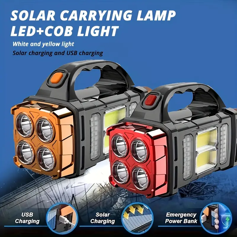 The HOTU Solar Portable Light is an essential tool for anyone who needs reliable, bright, and versatile outdoor lighting. Equipped with USB charging and solar capability, this multi-functional flashlight delivers exceptional convenience and performance for NZ households, campers, travelers, and workers. Designed with 4 LED front lighting and a powerful COB side light, it provides dual illumination for every situation—from night fishing and camping to home repairs and emergency power outages.