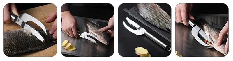 - Double-Row Serrations: Serrated design for easy scraping of fish scales without damaging the flesh. Double rows of serrated teeth, so that small and large fish scales have nowhere to hide.