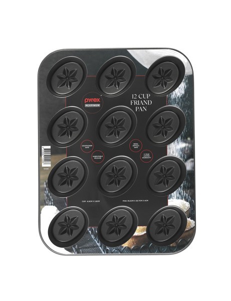 Bake exceptional friands with the Pyrex Platinum 12 cup Friand Pan. Made of premium quality heavy gauge metal with a superior coating, you can be confident that Pyrex Platinum is built to last.