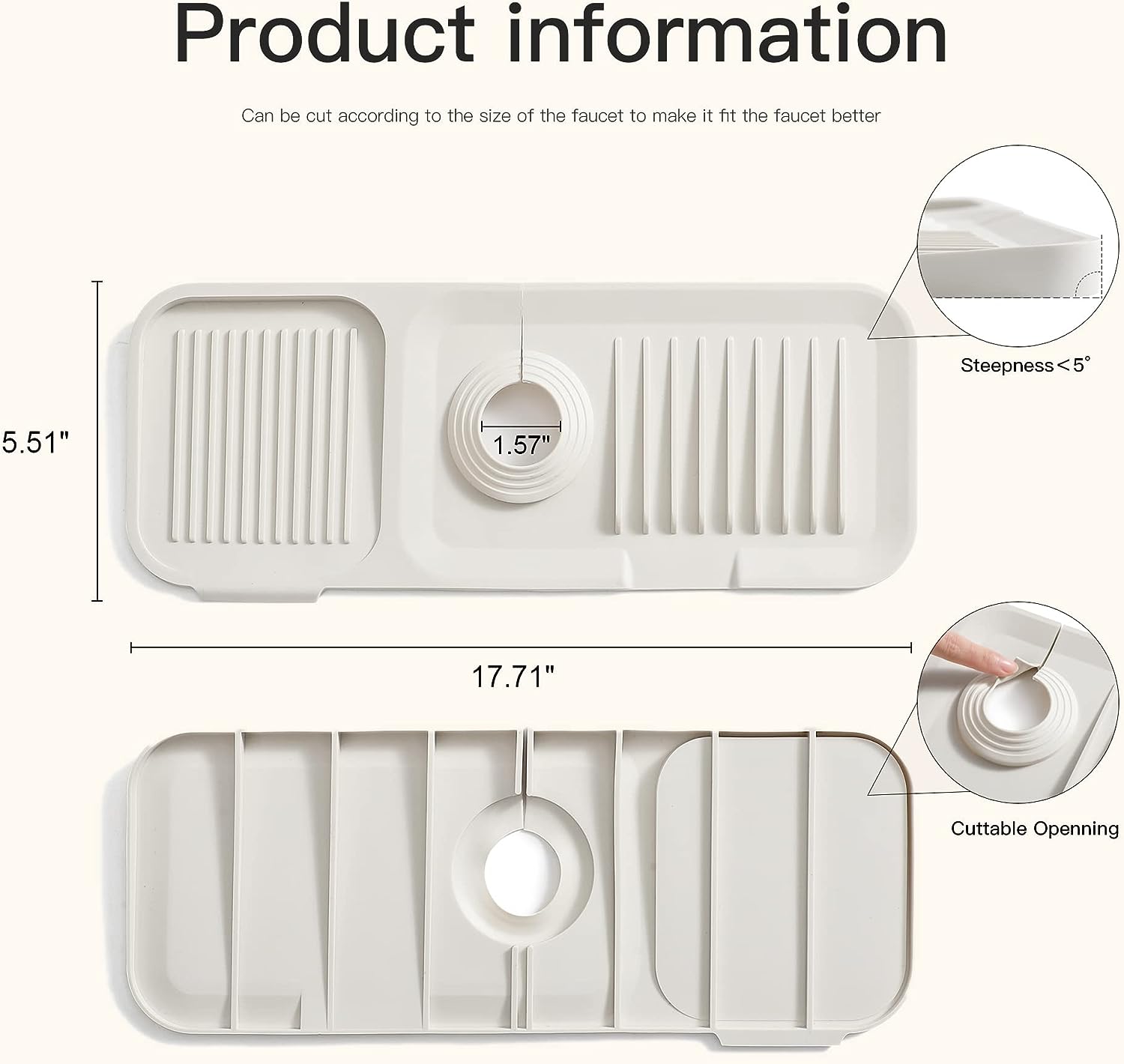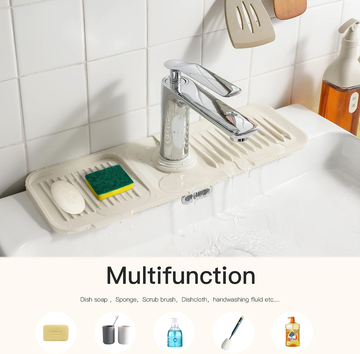 fuard, 24in faucet mat splash catcher, handle drip catcher tray, multipurpose for kitchen dish drying mats sponge holder and bathroom