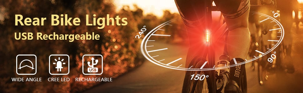 This rear bike light 240 degree wide angle visual design provides more visibility than any light on the market. Whether you're running, walking with your dog, cycling, skateboarding or hiking, these safety back bike lights for night riding will keep you safe and secure.