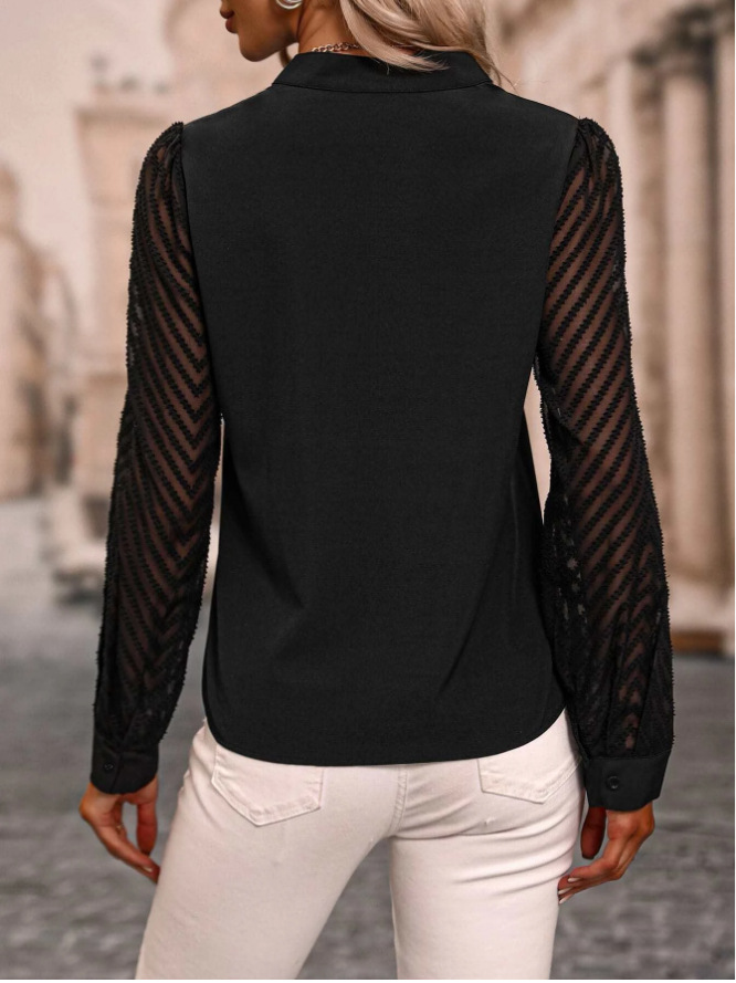 V-neck Long-sleeved Chiffon Shirt Lace Stitching Solid Color Tops