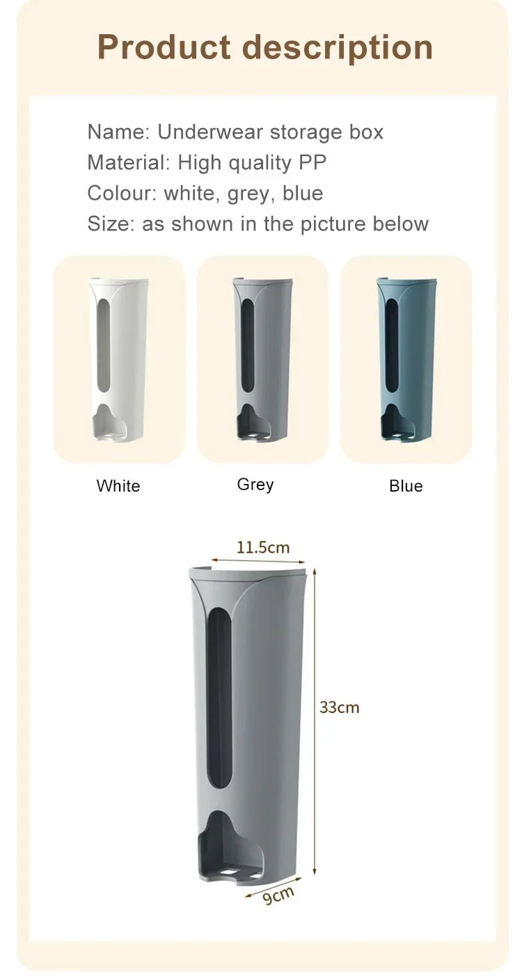 - 【Wall Mounted Socks Panties Storage Box】 Wall mounted storage box will bring you a new storage concept. With it, you will have an orderly and exquisite living space. No need to search for underwear in messy drawers.